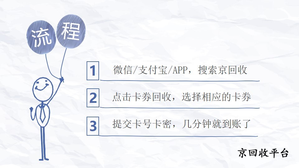 專業(yè)回收平臺是最省心的選擇,像京回收這類平臺就很適配。不用復雜注冊,打開頁面找到京東e卡入口,按提示填卡號、面值,提交后很快能看到報價。確認后平臺會核驗卡券,沒問題就直接把錢轉(zhuǎn)到你綁定的微信賬戶。之前幫朋友用京回收處理京東e卡提現(xiàn)到微信,從提交信息到微信到賬也就半小時,比自己琢磨其他辦法省太多事。